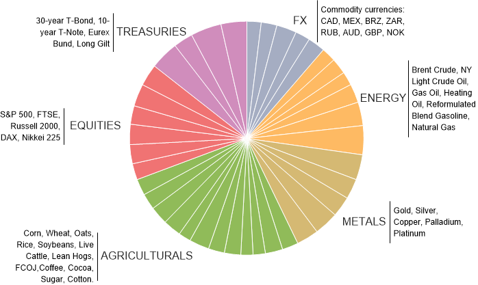 For qualified investors, Krainer Analytics can propose competitively priced turn-key solutions that include an effective inflation hedge: a broadly diversified managed futures portfolio covering more than up to 100 financial and commodity futures markets with an accurately gauged risk profile and position limits in each market.