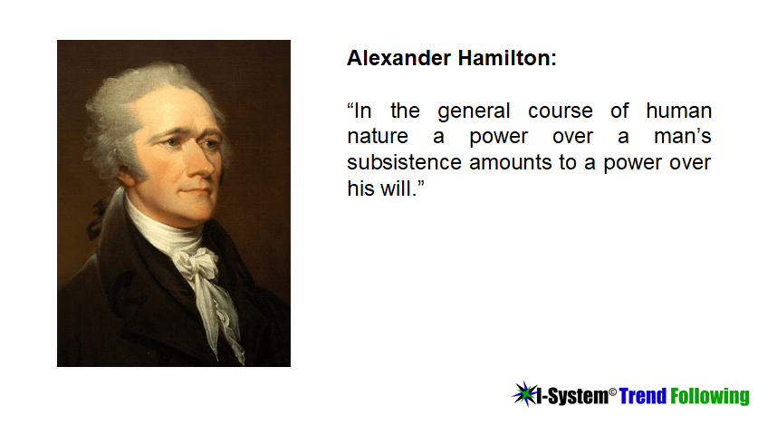 Thomas Paine’s slightly younger contemporary, Alexander Hamilton linked the question of money to liberty: