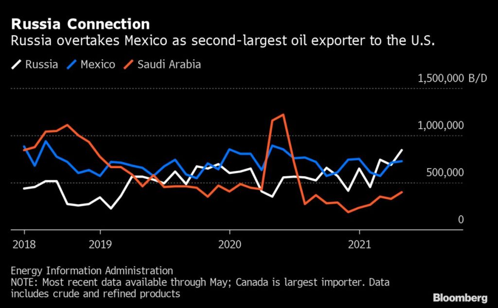 Thankfully, this week’s summit between Joe Biden and Vladimir Putin, while achieving nothing concrete seems to have diffused tensions somewhat and hopefully cooler heads will prevail. Diffusing tensions would not only improve things for most of the people, businesses and nations involved, they would also prevent a storm of drastic and unpredictable consequences that could result from the “tough sanctions” some in the west are itching to impose. Namely, we are facing an intractable energy crisis that’s becoming increasingly acute in the West. Trade with Russia could prove to have a disproportionate impact in this sense. In addition to her Natural Gas reserves and pipelines to Europe, Russia has become a de-facto swing oil producer and No. 1 oil exporter to the United States: