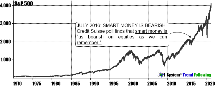 In 2016, the “smart money” was ultra-bearish. Around the same time John Mauldin was predicting an imminent 50% correction… For all the intellectual exertion that goes into such analyses, most market experts have missed the one force that has had the decisive impact on stock prices: central bank monetary inflation. This is not exactly a new thing, but a recurring pattern that’s been remarkably consistent for at least a century now as the following table shows: And for years they’ve all been dead wrong. For all the intellectual exertion, most analysts have missed the one force that has had the decisive impact on stock prices: central bank monetary inflation. This is not exactly a new thing, but a recurring pattern that’s been remarkably consistent for at least a century now as the following table shows:
