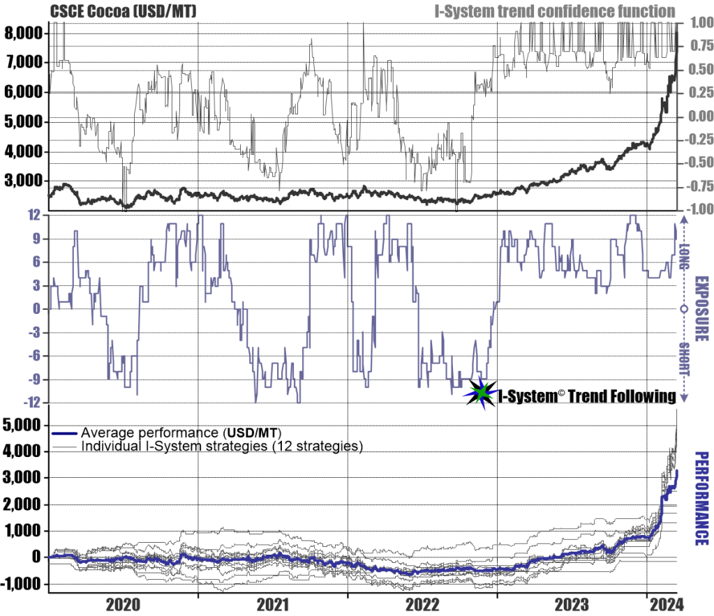 A similar chart shows our performance trading CSCE Cocoa futures: