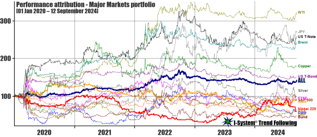 A well-diversified trend following portfolio is a robust diversifier; importantly, it provides a non-correlated source of returns as we saw in 2022 and also during the 2020 market turmoil. In both cases, Major Markets portfolio has diverged from adverse trends in stocks and bonds markets.
